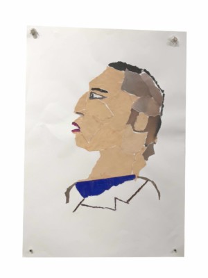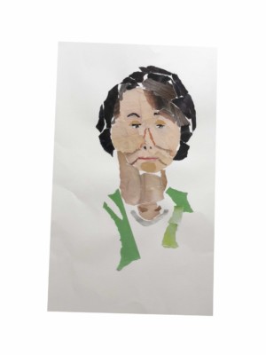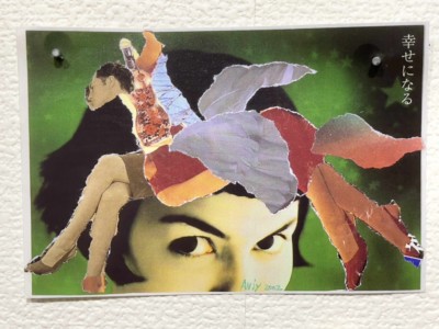 入院中、友達が退院するというので、別の人が退院祝いに花吹雪を作ろうと雑誌を破いていたのを見て、「もっときれいな色で作ったら?」と言った時、「あっそうだ、私はコラージュを作ったことがあるからそれを作って、退院祝いにしよう。」と思ったのがきっかけで、ナイフもはさみも使えない閉鎖病棟内で手袋をはずし、素手で雑誌をちぎって作品を作るようになった。その名残りで今でも作品は、手袋をはずして手でちぎって糊で貼って作っている。それが私にとっての”癒し”としての自己表現となっている。